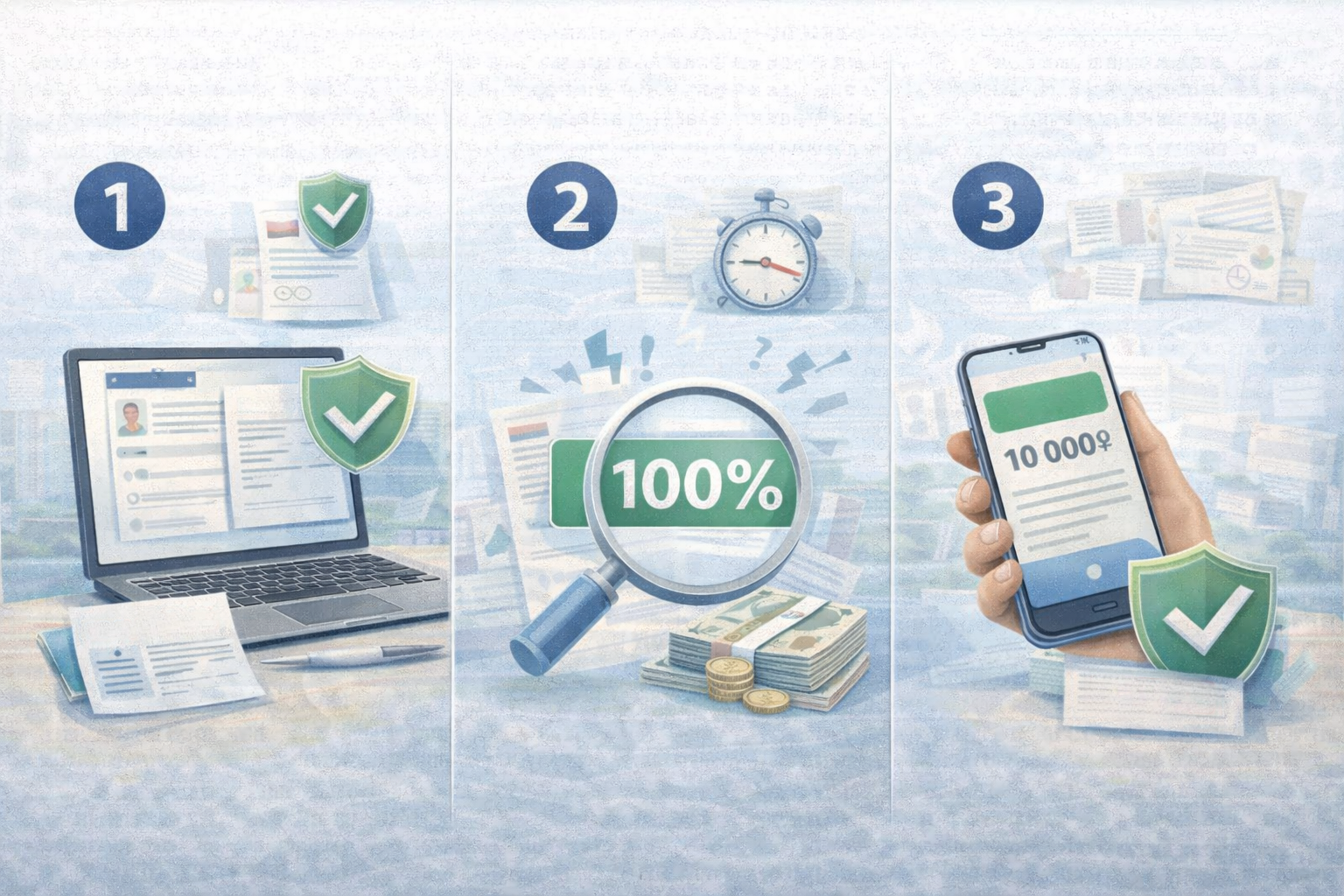 - корректность личной информации — контактные и паспортные данные должны быть достоверными. Максимизирует вероятность одобрения и обращение через Госуслуги;